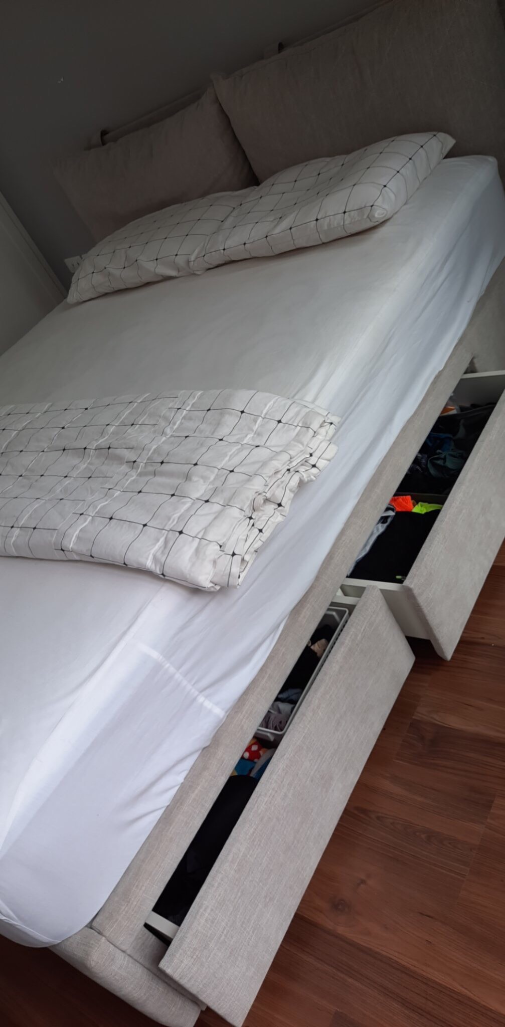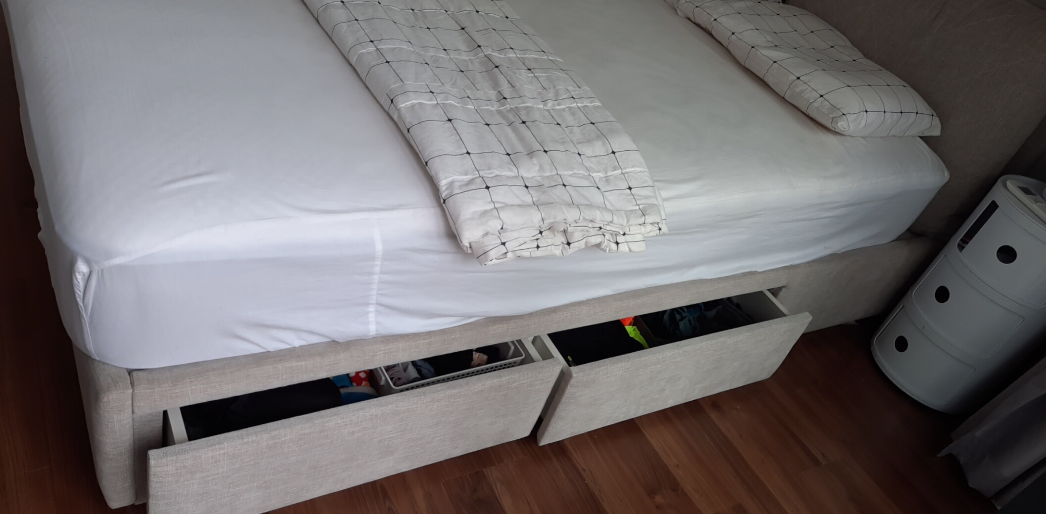 Giường khung MFC An Cường bọc nỉ, giường có 2 ngăn kéo trữ đồ.