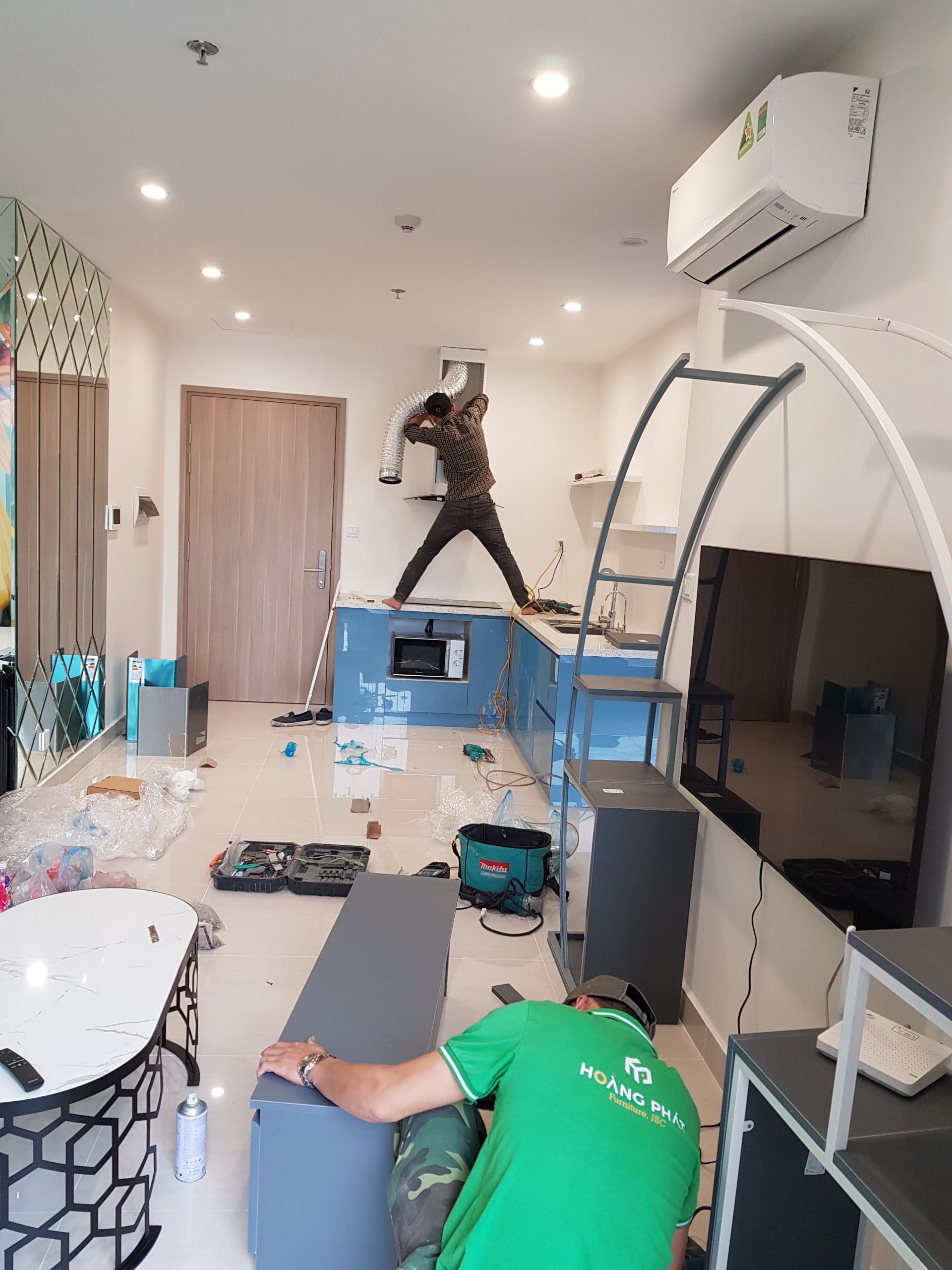 Hình ảnh trong quá trình Hoàng Phát thi công hoàn thiện nội thất căn hộ.